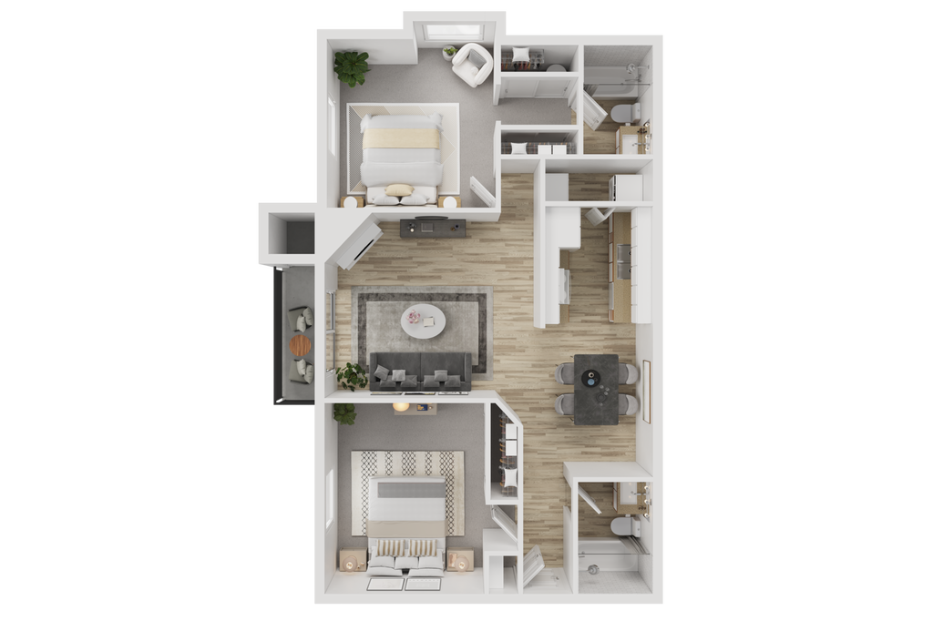 2 Dormitorios, 1 Baño, 1070 pies²Disponible AhoraGalería del Modelo
