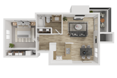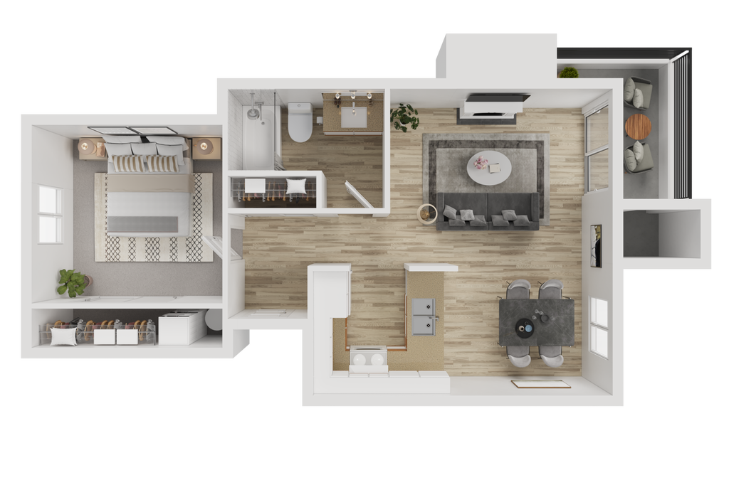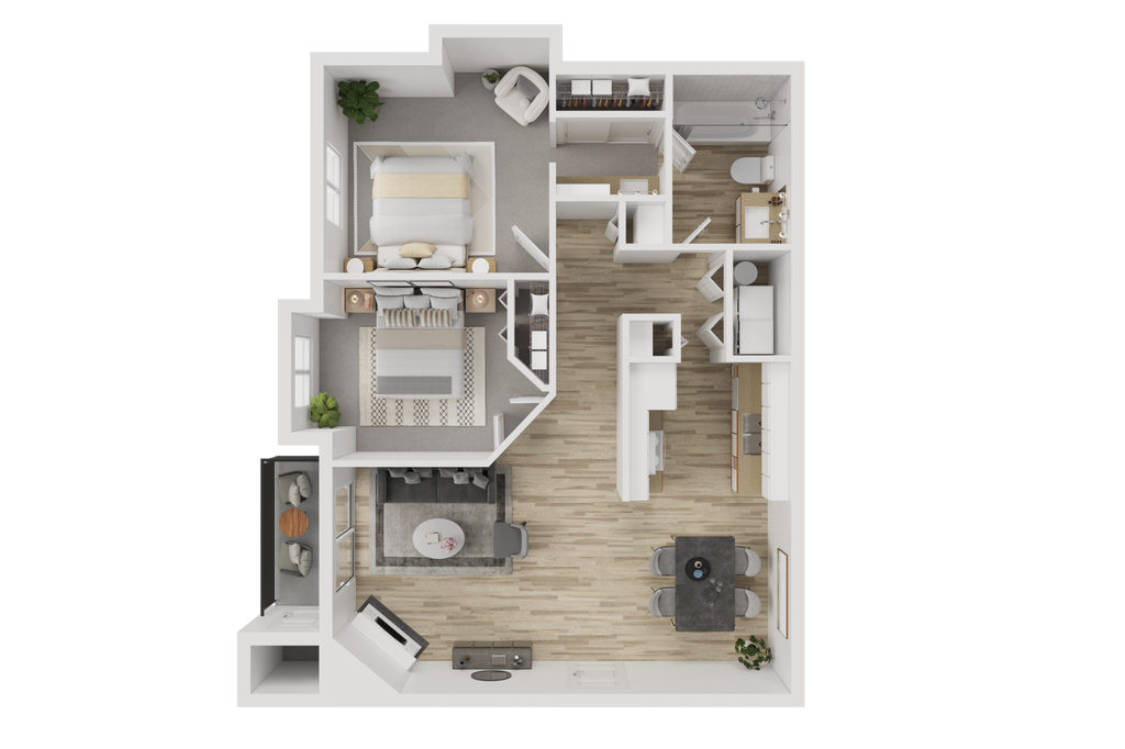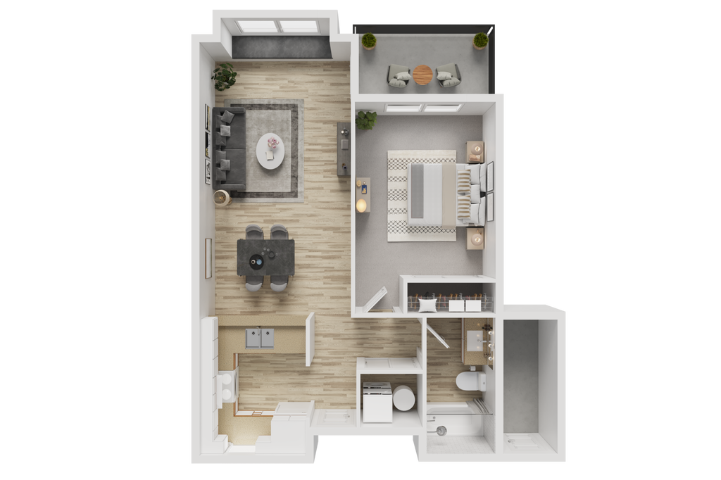 1 Bedroom - Plano 3 Unidad de apartamento: A302Modelo de apartamento: 1 Bedroom$1,4951 Dormitorio, 1 Baño, 650 sq ftDisponible March 31, 20262 Dormitorios
