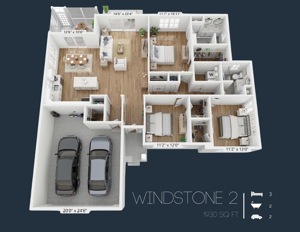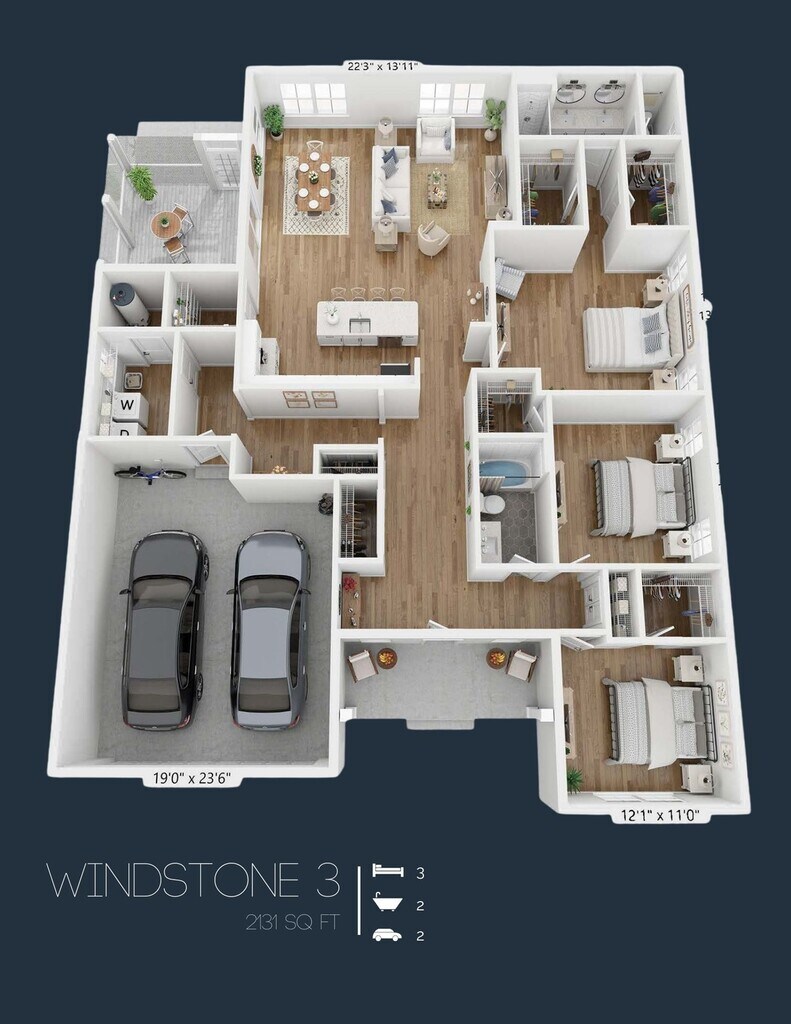 Modelo de apartamento: Windstone 3Desde $2,3953 Dormitorios, 2 Baños, 2131 sq ftDisponible January 1, 2026![]()