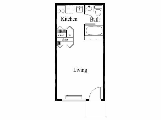 Modelo de apartamento: Studio Apartment (Standard)$995Estudio, 1 Baño, 288 sq ftNo Disponible![]()