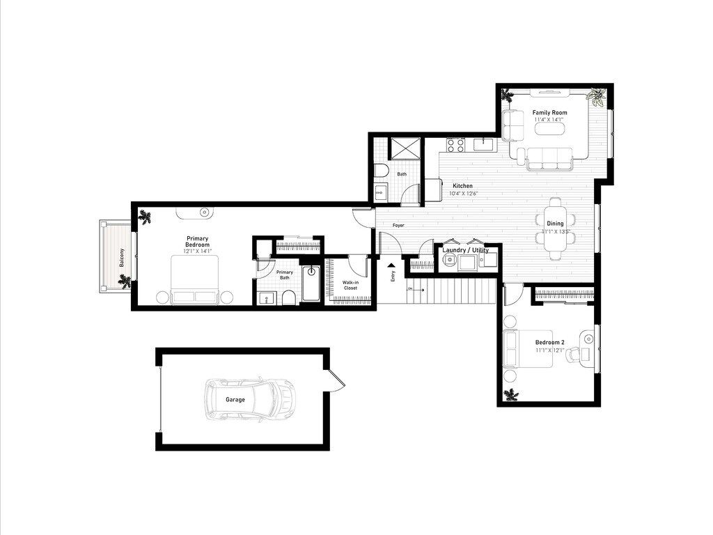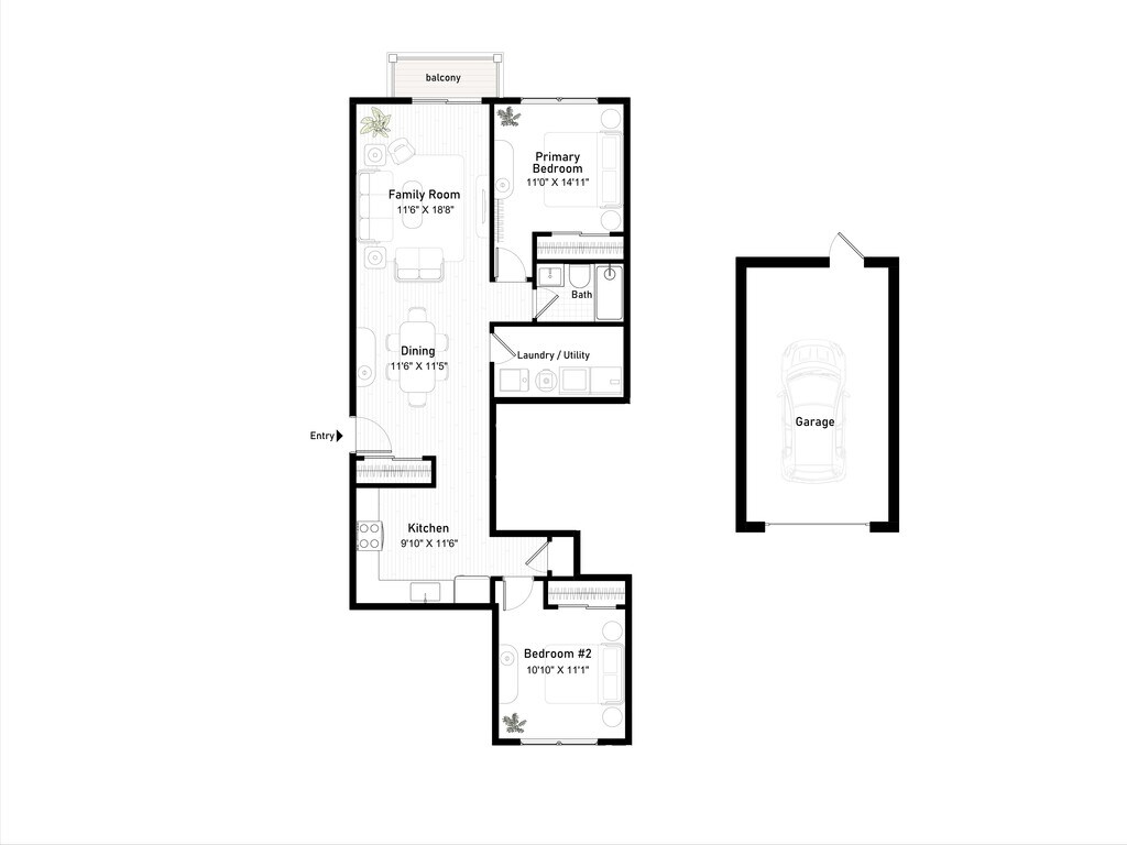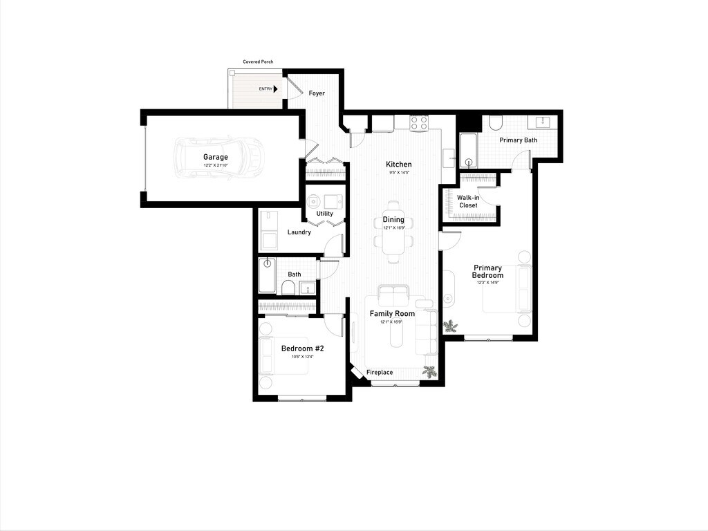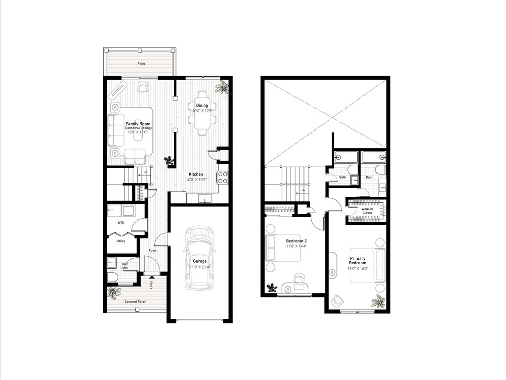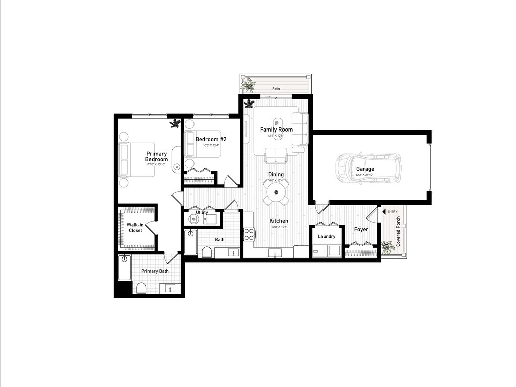 2 Dormitorios, 1 Baño, 1002 pies²Disponible AhoraGalería del Modelo