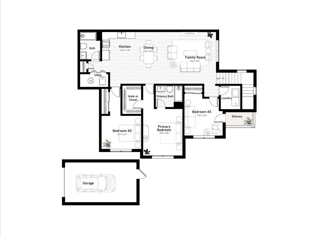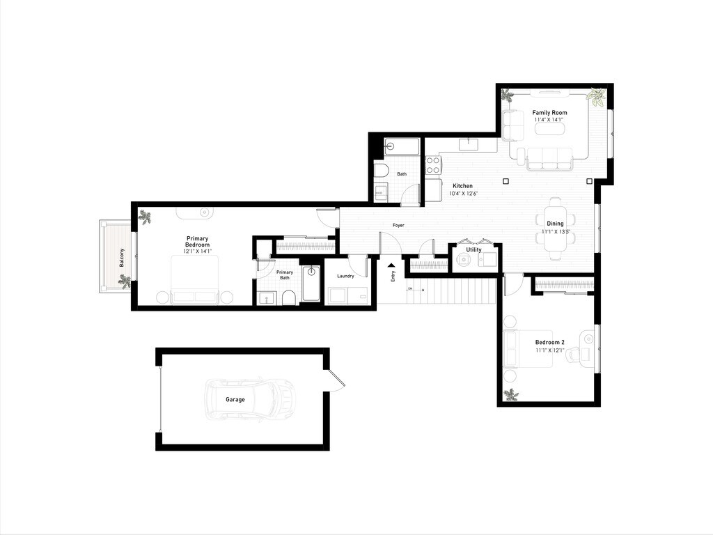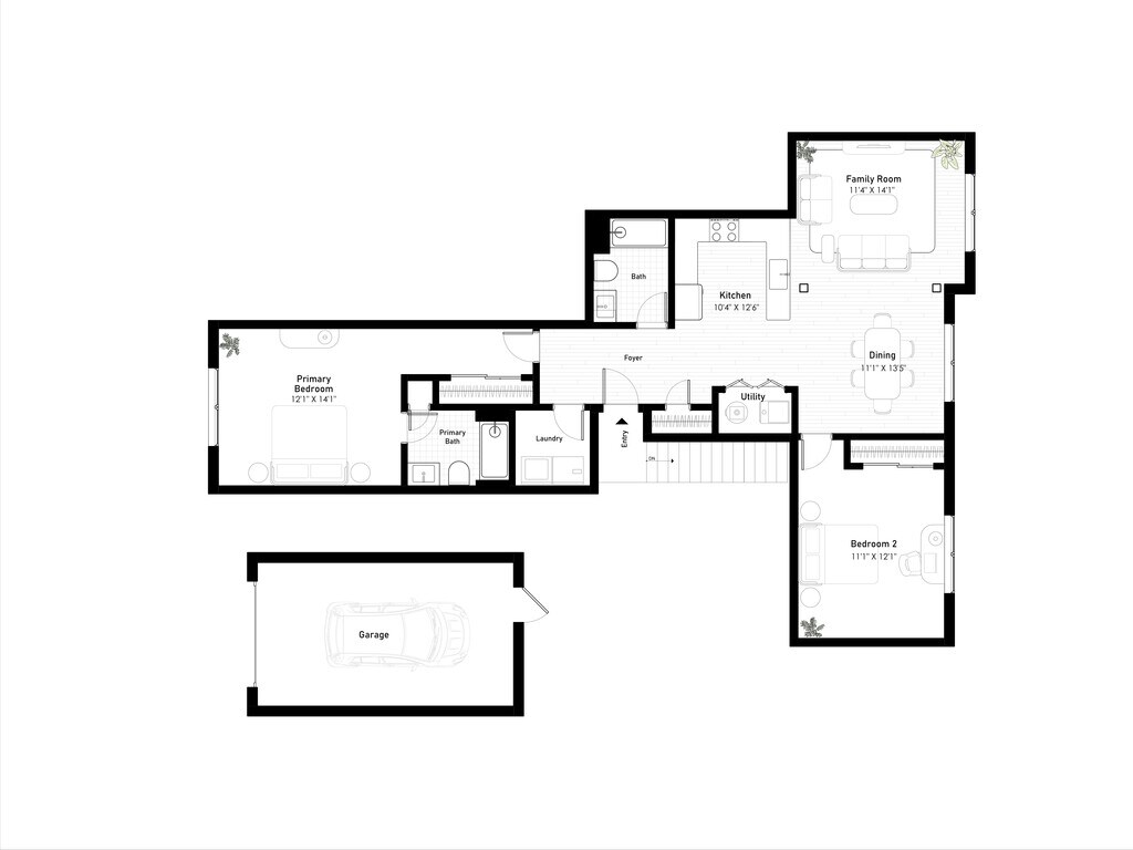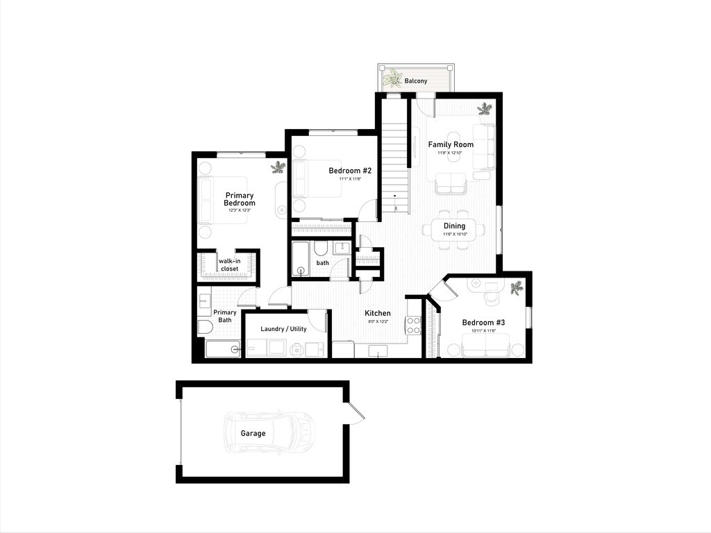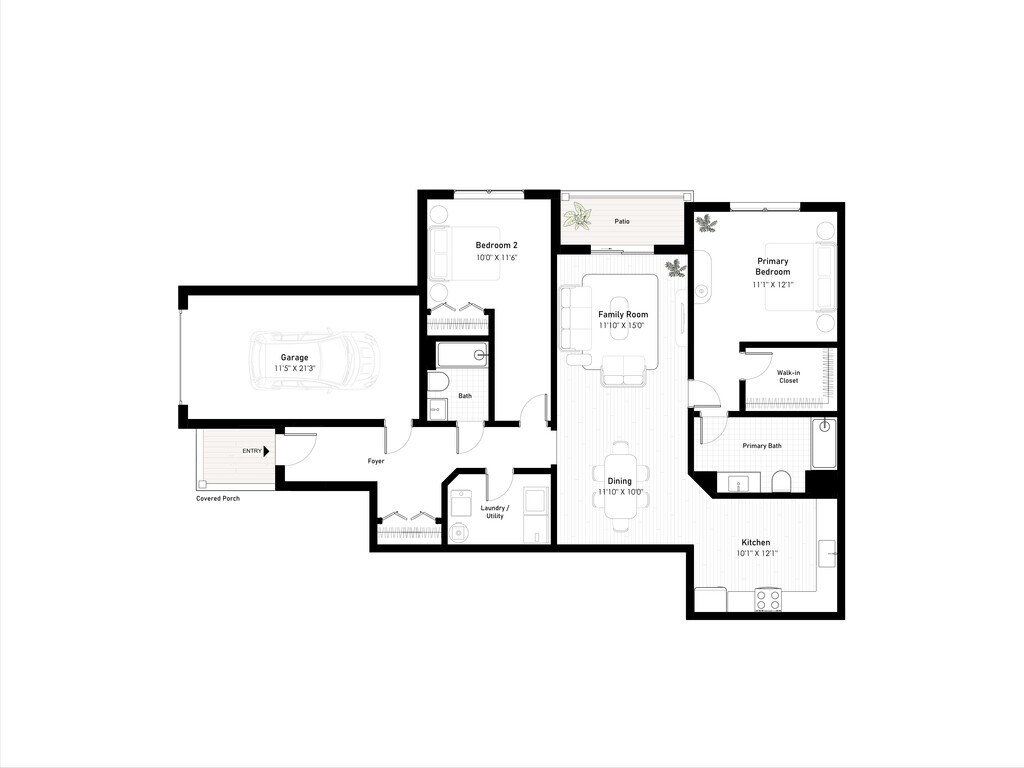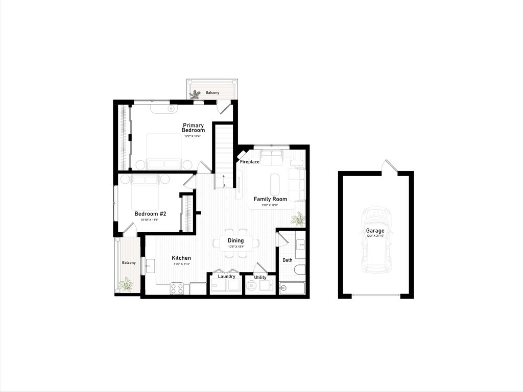 2 Dormitorios, 1 Baño, 1002 pies²Disponible AhoraGalería del Modelo