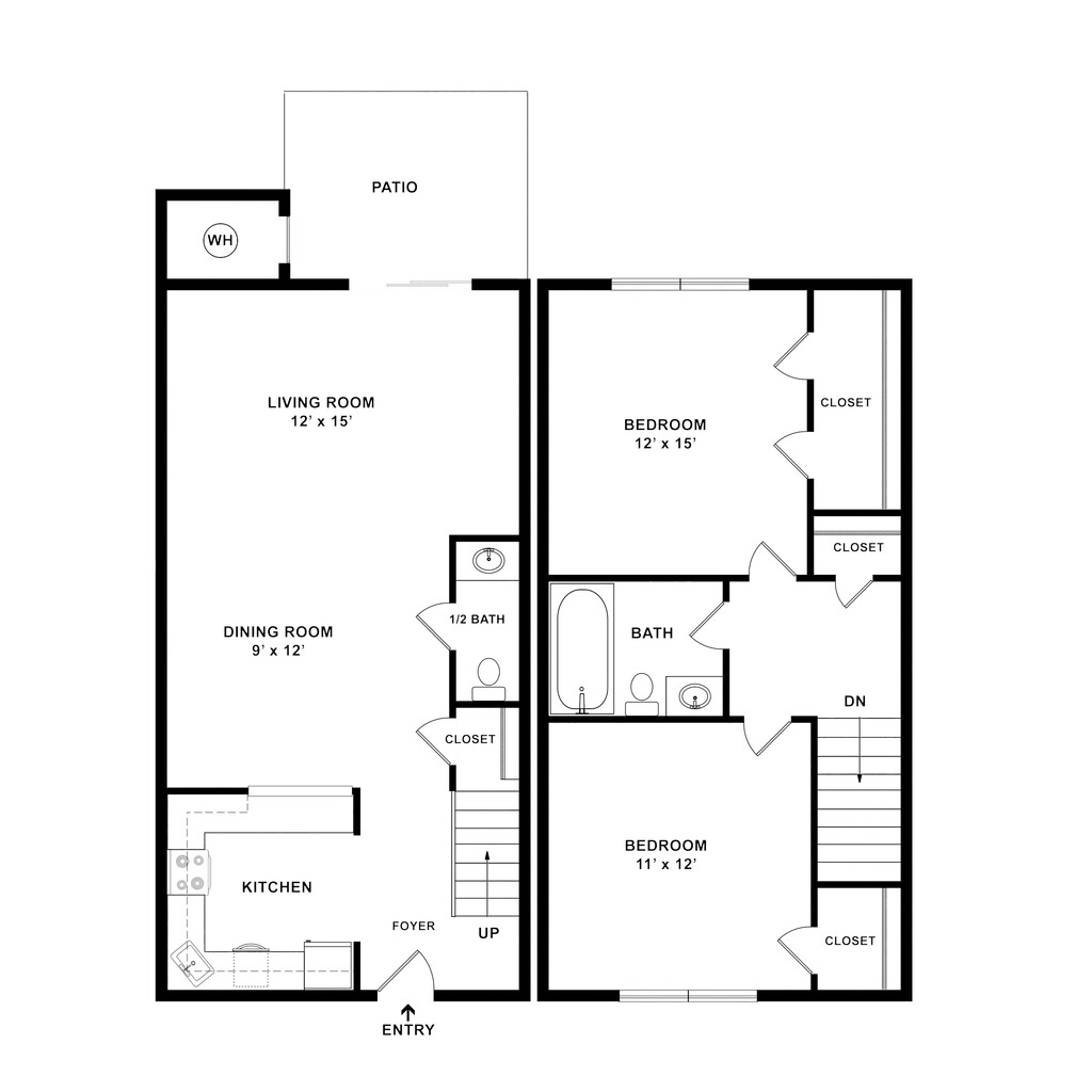 2 Dormitorios, 1.5 Baños, 1000 pies²Disponible AhoraGalería del Modelo