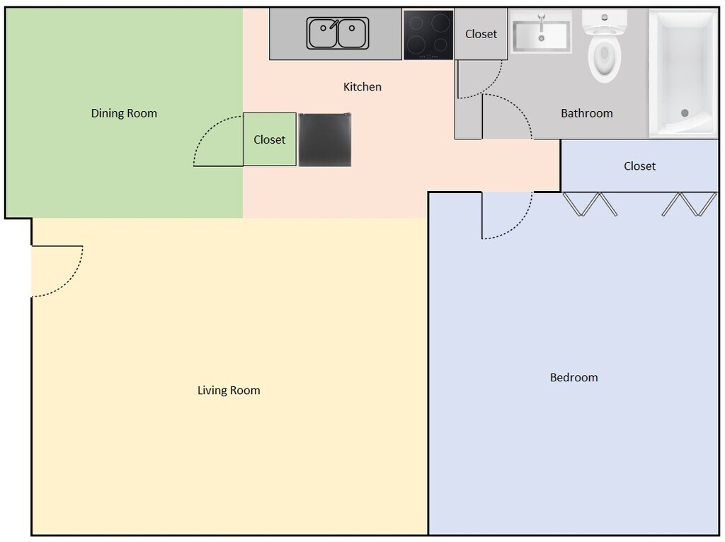 1 Dormitorio, 1 Baño, 700 pies²Disponible AhoraGalería del Modelo
