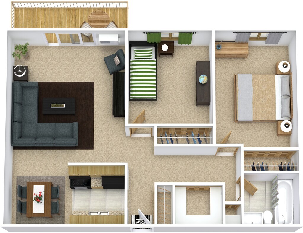 2 Dormitorios, 1 Baño, 857 pies²Precio Mensual TotalDisponible AhoraGalería del Modelo