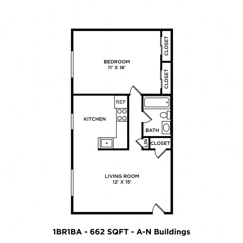 1 Dormitorio, 1 Baño, 662 pies²Disponible AhoraGalería del Modelo