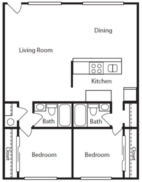 2 Dormitorios, 2 Baños, 975 pies²Galería del Modelo