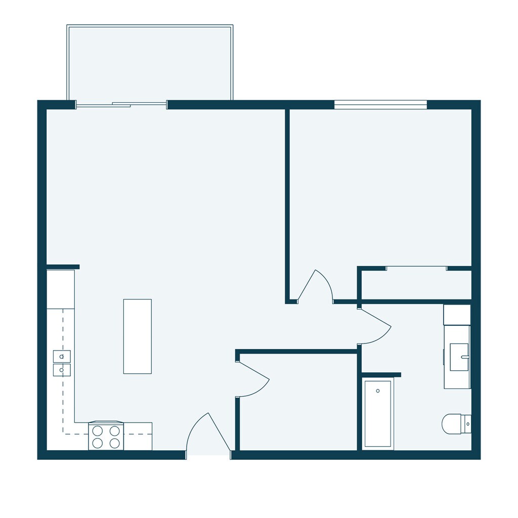1 Dormitorio, 1 Baño, 748 pies²Disponible Nov 1Galería del Modelo