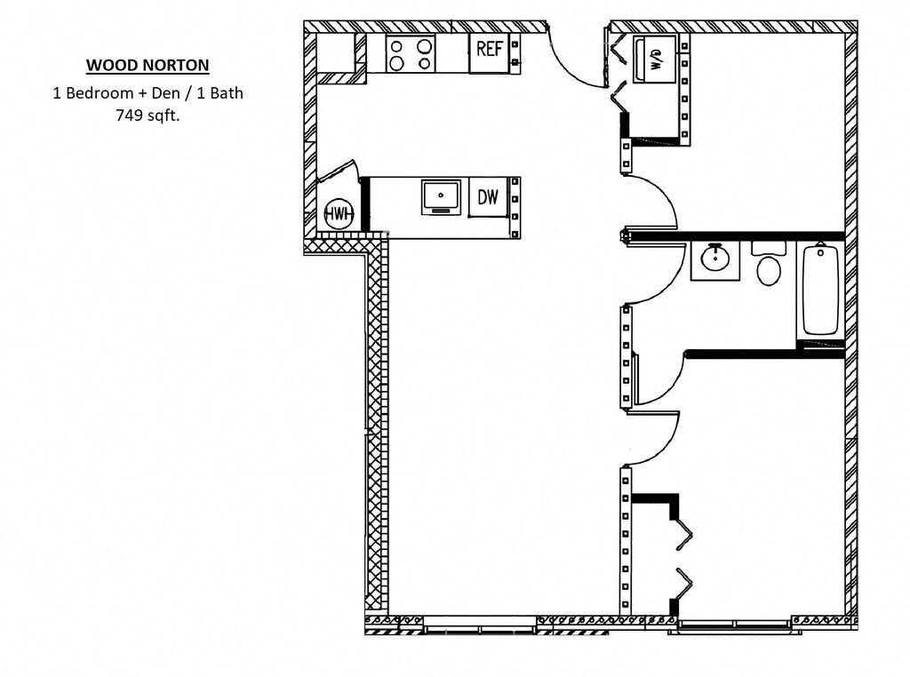 Modern - 1 Bed + Den, 1 Bath - Plano 8 Unidad de apartamento: A308Modelo de apartamento: Modern - 1 Bed + Den, 1 Bath$1,6751 Dormitorio, 1 Baño, 749 sq ftDisponible June 1, 2026![]()