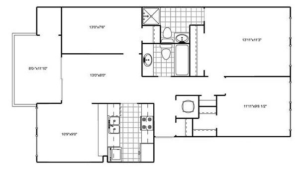 2 Beds, 1.5 baths - Plano 2 2 Beds, 2 baths