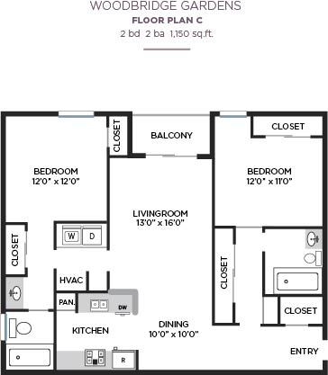 Modelo de apartamento: C Floor PlanDesde $2,9752 Dormitorios, 2 Baños, 1150 sq ftNo Disponible![]()