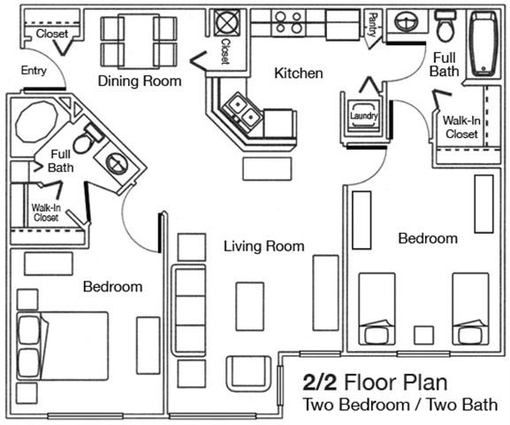 Modelo de apartamento: 2B2B2 Dormitorios, 2 Baños, 1000 sq ftNo Disponible![]()
