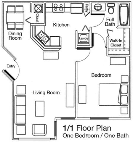 Modelo de apartamento: 1B1B1 Dormitorio, 1 Baño, 725 sq ftNo Disponible![]()