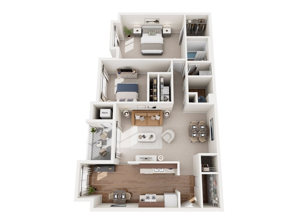 2O - Plano Unidad de apartamento: 1381A303Modelo de apartamento: 2O$1,9072 Dormitorios, 1 Baño, 944 sq ftDisponible June 15, 20263 Dormitorios