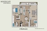 Modelo de apartamento: 2 Bedroom$3,2952 Dormitorios, 2 Baños, 1150 sq ftDisponible Ahora2 Bedroom - Plano 1