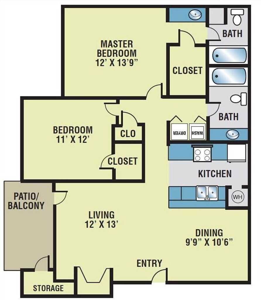 Modelo de apartamento: B1Desde $9202 Dormitorios, 2 Baños, 900 sq ftDisponible AhoraPlanosFotos![]()