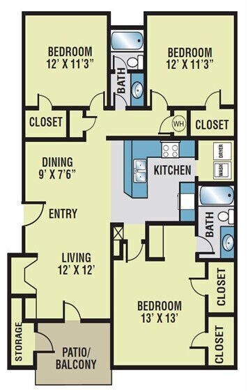 El rango de alquiler de Apartamentos 1 dormitorios a 3 dormitorios en Woodcrest Apartments van desde $770 a $1,265