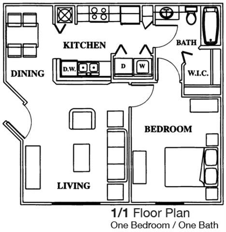 Modelo de apartamento: 1x11 Dormitorio, 1 Baño, 679 sq ftNo Disponible1x1 - Plano 1 2 Dormitorios
