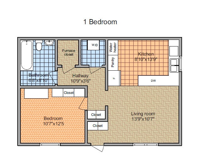 1 Dormitorio, 1 Baño, 670 pies²Galería del Modelo