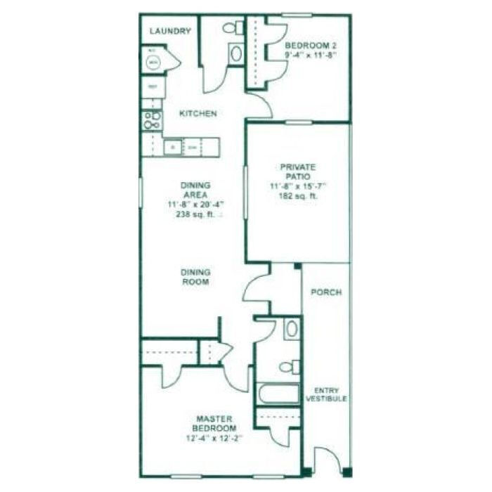 Modelo de apartamento: 2/1.5Desde $1,1552 Dormitorios, 1.5 Baños, 870 sq ftDisponible Ahora![]()