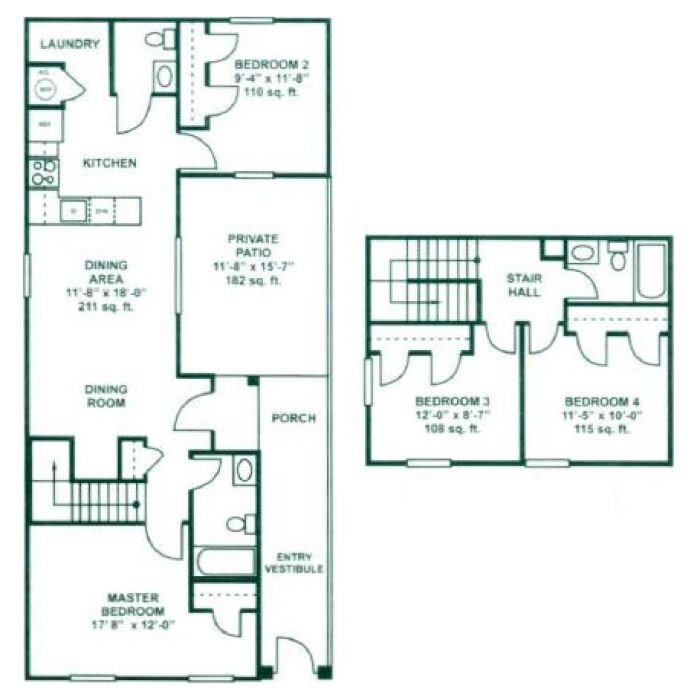 Modelo de apartamento: 4/2.5Desde $1,5574 Dormitorios, 2.5 Baños, 1370 sq ftDisponible Ahora![]()