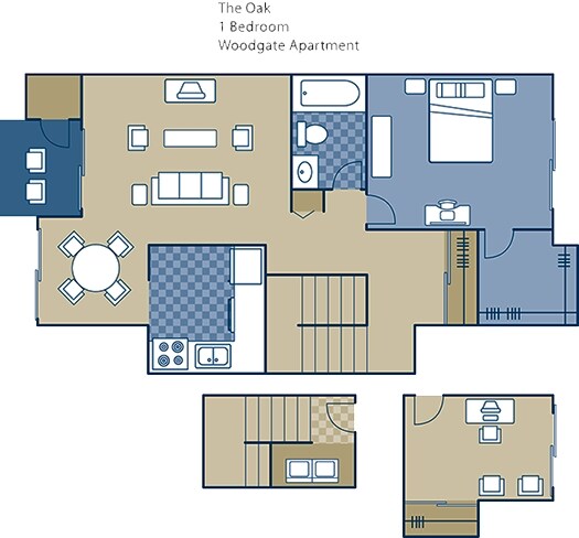 1 Dormitorio, 1 Baño, 900 pies²Galería del Modelo