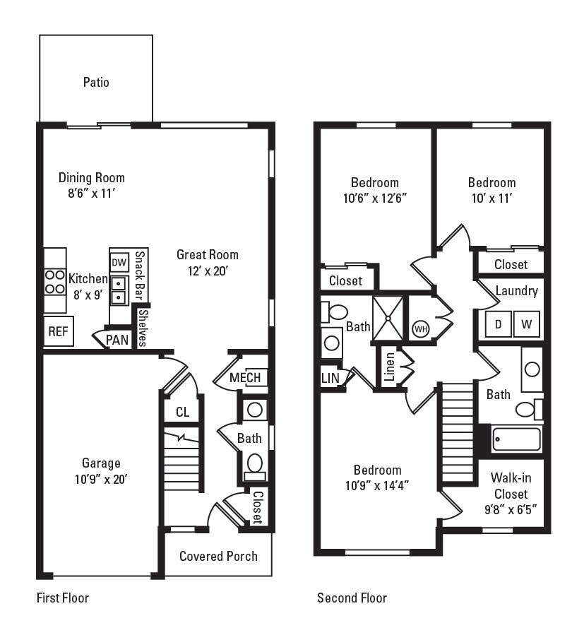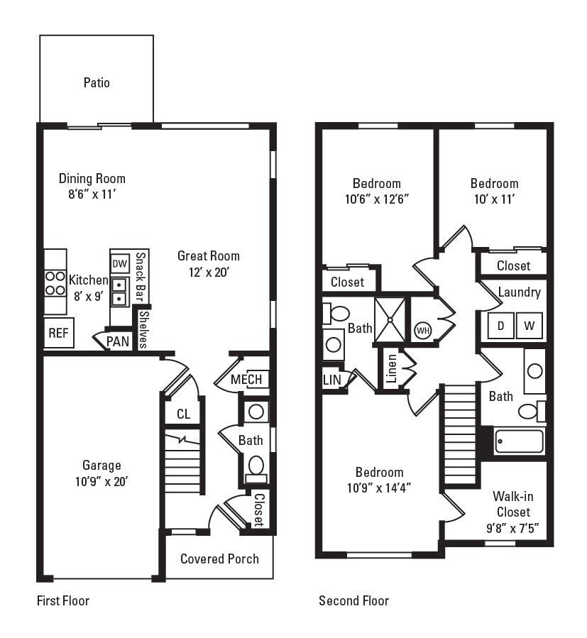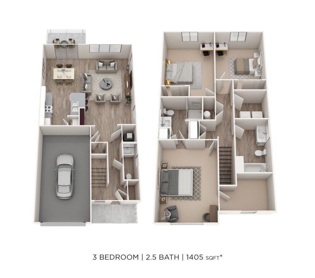 Three Bedroom 2.5 Bath Townhome- 1,395-1,405 sqft