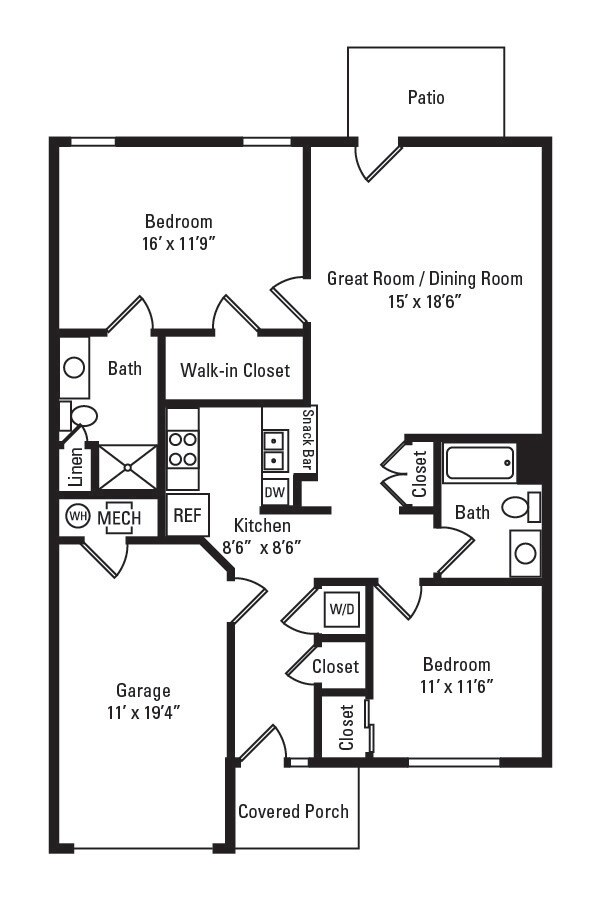 Modelo de apartamento: Two Bedroom 2 Bath Ranch-style Townhome- 1,086 ...Desde $2,3602 Dormitorios, 2 Baños, 1086 sq ftDisponible Ahora![]()