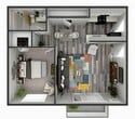 1 Dormitorio, 1 Baño, 700 pies²Disponible AhoraGalería del Modelo