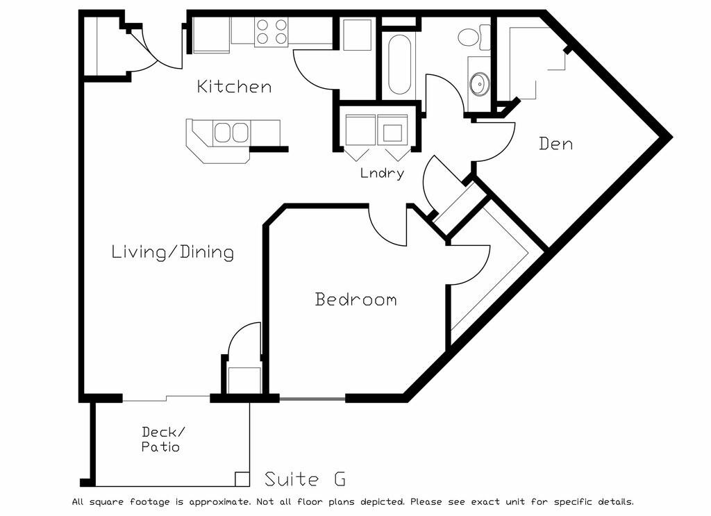 1 Dormitorio, 1 Baño, 723 pies²Galería del Modelo