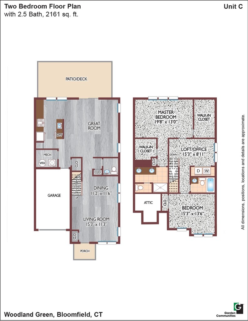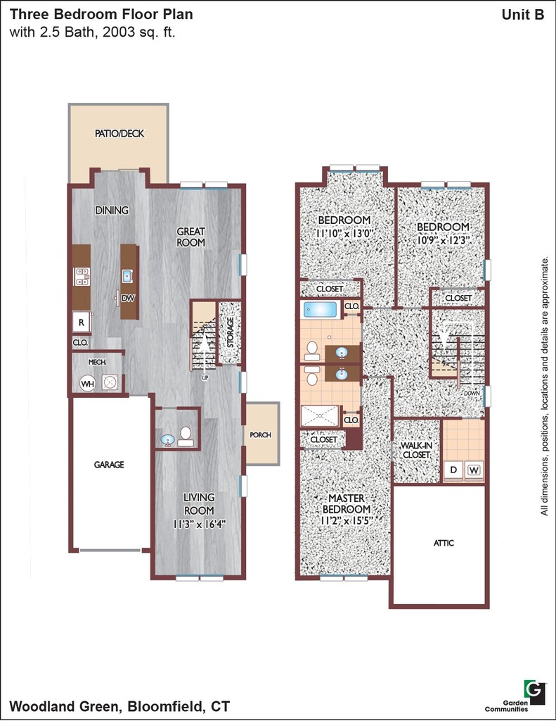 ¡OBRA NUEVA DE VIVIENDAS BIFAMILIARES! ¡DISFRUTA DE UN PATIO TRASERO Y GARAJES ADJUNTOS PRIVADOS! Bloomfield es un tranquilo y pintoresco pueblo de Connecticut que cuenta con belleza rural, una gran cantidad de tierra, y escuelas de calidad. Ubicado a solo 10 minutos al oeste del capitolio del estado de Bloomfield es de fácil acceso al Aeropuerto Internacional de Bradley, Springfield, Massachusetts y de las autopistas interestatales 84 y 91. Con esta excelente ubicación, Woodland Green ofrece fácil acceso a una gran variedad de opciones culturales, tiendas, y restaurantes en el condado de Hartford y del oeste de Massachusetts. Bloomfield también es el hogar de tres campos de golf y la ciudad cuenta con más de 1800 acres como espacio abierto para escuelas y espacios de parques que se utilizan para recreación. Woodland Green cuenta con amplias casas de dos familias de nueva construcción de lujo ubicadas en un entorno arbolado natural. Elige entre 4 planos de planta diferentes entre 122 casas de dos y tres habitaciones para dos familias ubicadas en la calle sin salida de Privilege Road. Estas amplias residencias varían desde 1,866 a 2,174 ft² y tienen magníficos acabados, que incluyen cocinas con electrodomésticos de acero inoxidable, encimeras de cuarzo y gabinetes de cierre suave. Los pisos de tablones de madera de vinilo en las áreas de estar principales, las habitaciones alfombradas, el amplio espacio de guardarropas y los patios privados se suman al atractivo de estas casas de dos familias bien equipadas. Todas las residencias tienen dos baños y medio, aire acondicionado con control individual, y lavadora y secadora en la unidad para agregar comodidad. Todos los apartamentos también incluyen garajes adjuntos privados. Además de aceptar mascotas, los residentes de Woodland Green disfrutan de una cálida y acogedora casa club con amplias instalaciones recreativas que incluyen gimnasio moderno, piscina con brasero al aire libre, cancha de tenis, y un parque para perros. No pierdas nuestros amplios apartamentos, brinda el espacio perfecto para una oficina en el hogar o un área de juegos infantiles.