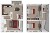 Modelo de apartamento: The OakLlame para Precios4 Dormitorios, 2 Baños, 1305 sq ftNo DisponibleThe Oak - Plano 1