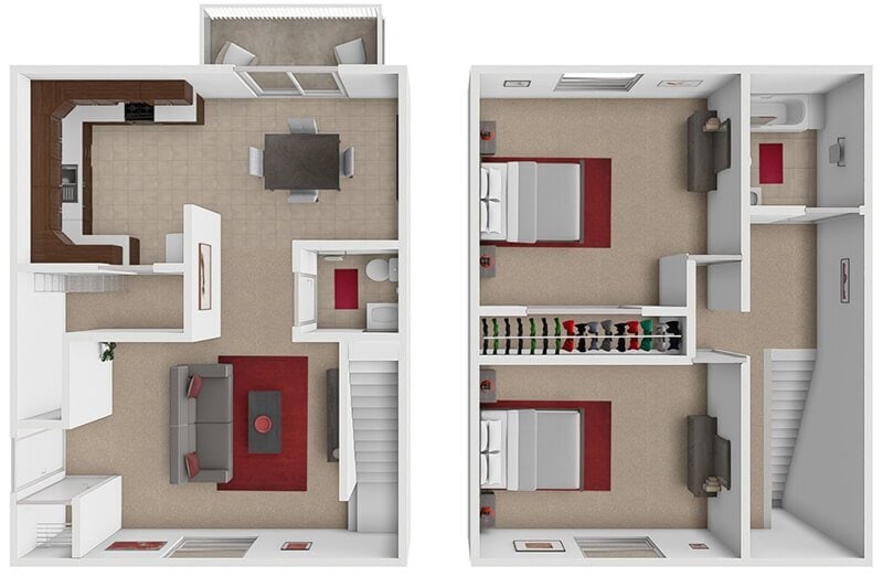 2 Dormitorios, 1.5 Baños, 854-864 pies²Disponible AhoraGalería del Modelo