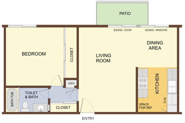 1 Dormitorio, 1 Baño, 715-815 pies²Disponible AhoraGalería del Modelo
