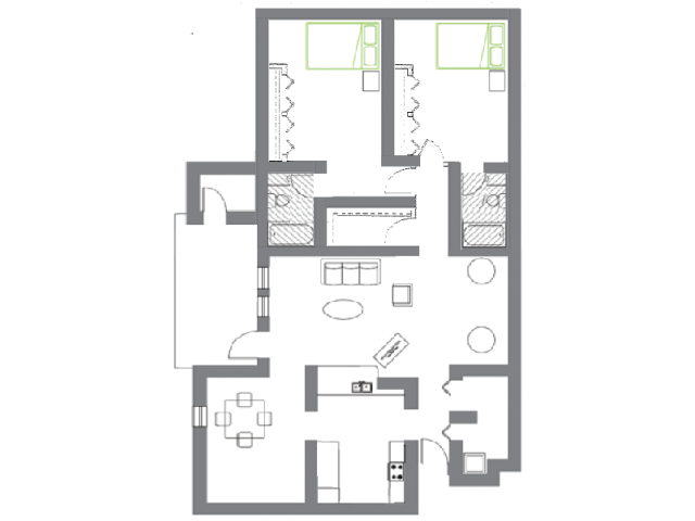 Precio Fecha Disponibilidad Unidad Pies² $1,799 August 14, 2026 Private 720 Detalles y características de la Unidad Private