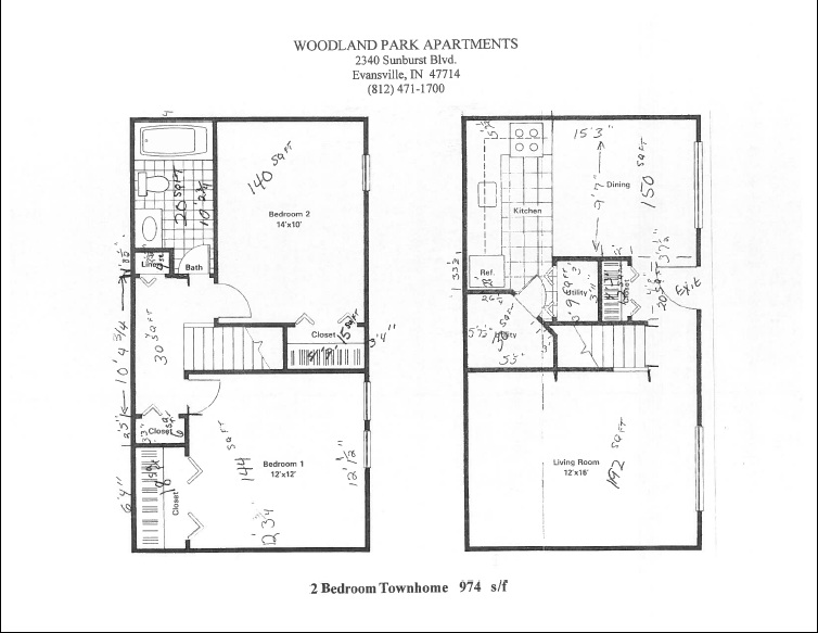 Modelo de apartamento: 2BD Townhouse2 Dormitorios, 1 Baño, 974 sq ftNo Disponible![]()