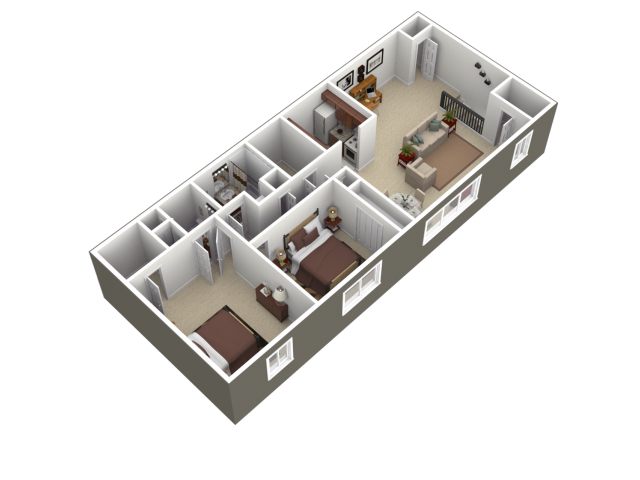 Modelo de apartamento: Two Bedroom One Bath2 Dormitorios, 1 Baño, 910 sq ftNo Disponible![]()