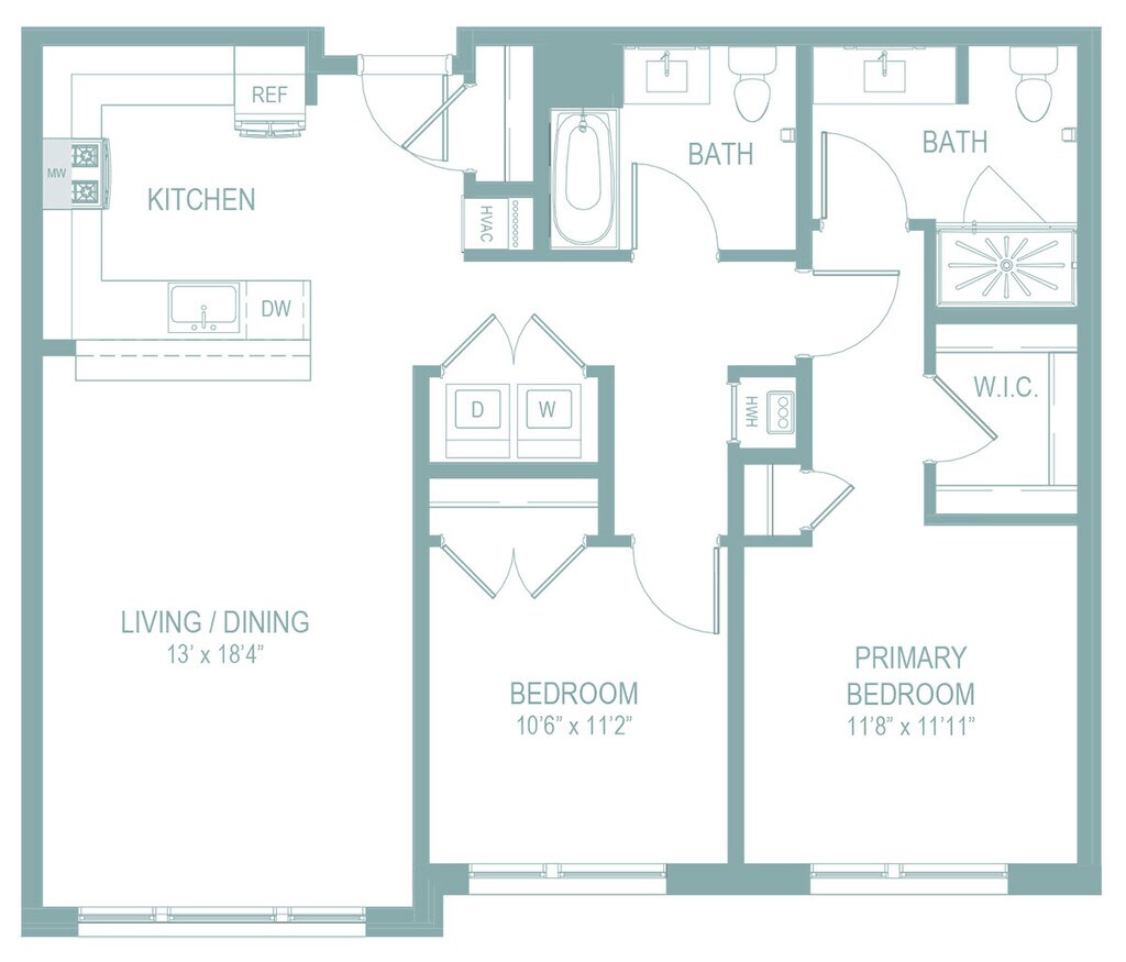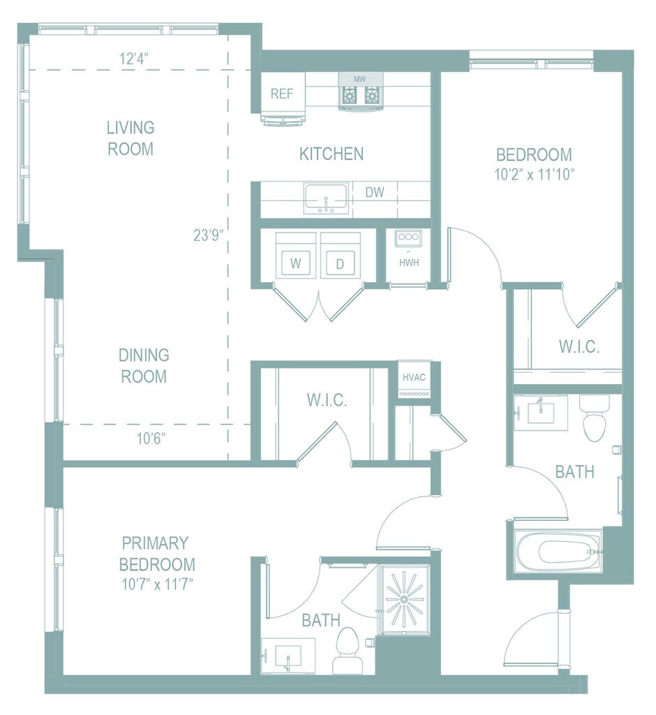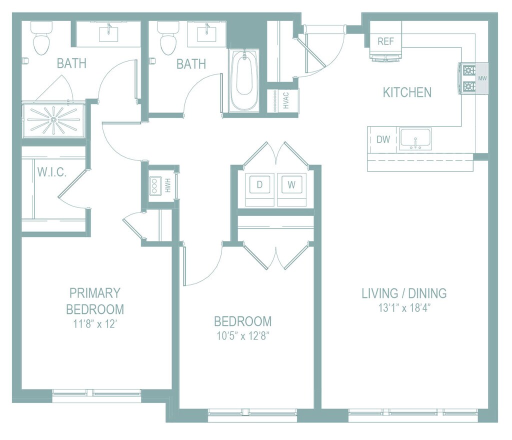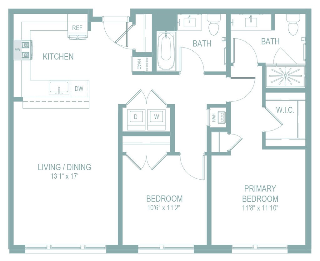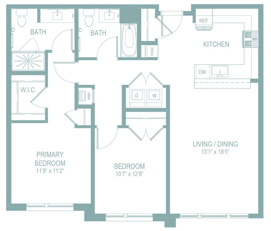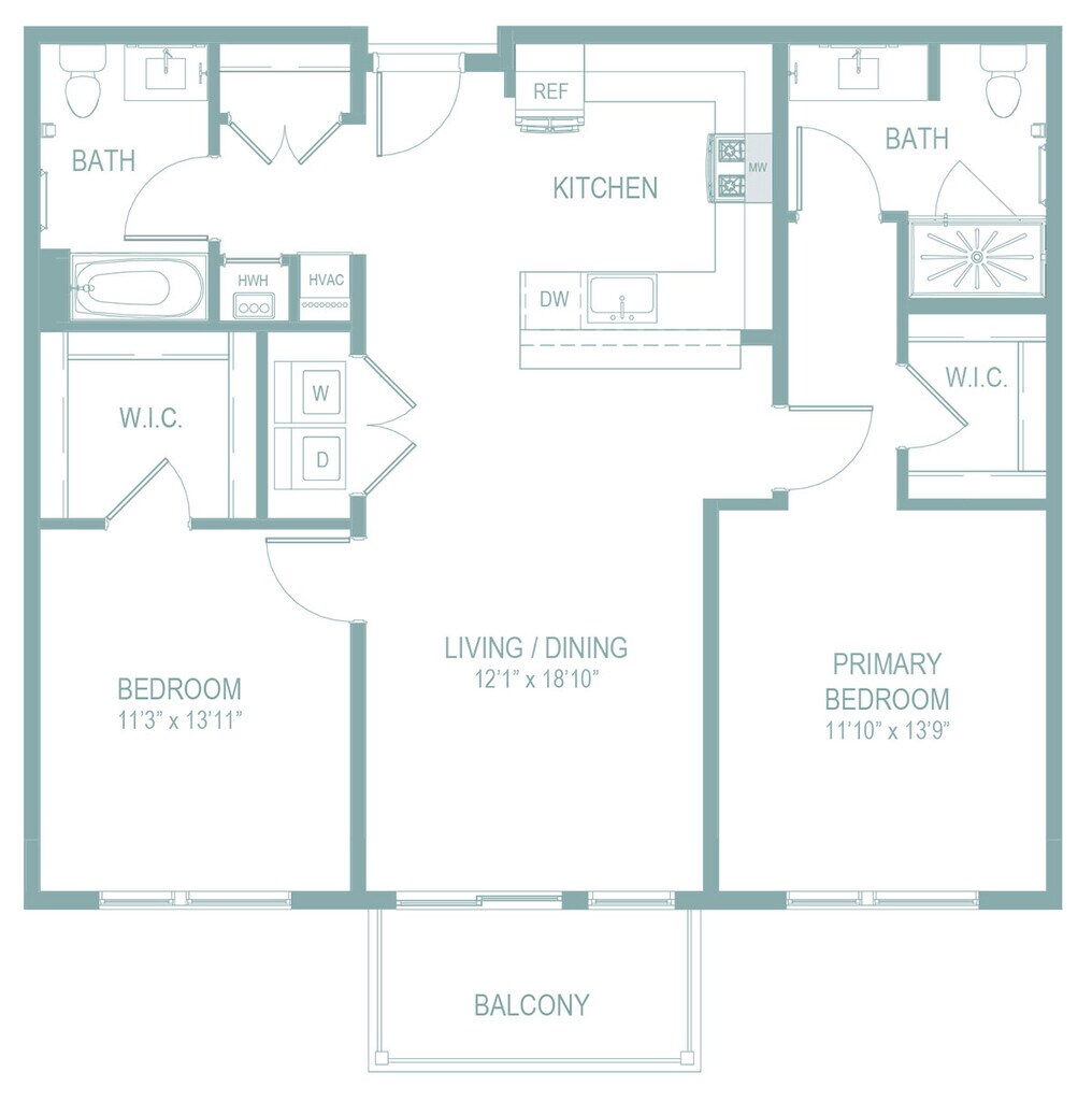 Modelo de apartamento: B1.2$3,7402 Dormitorios, 2 Baños, 1130 sq ftDisponible Ahora![]()