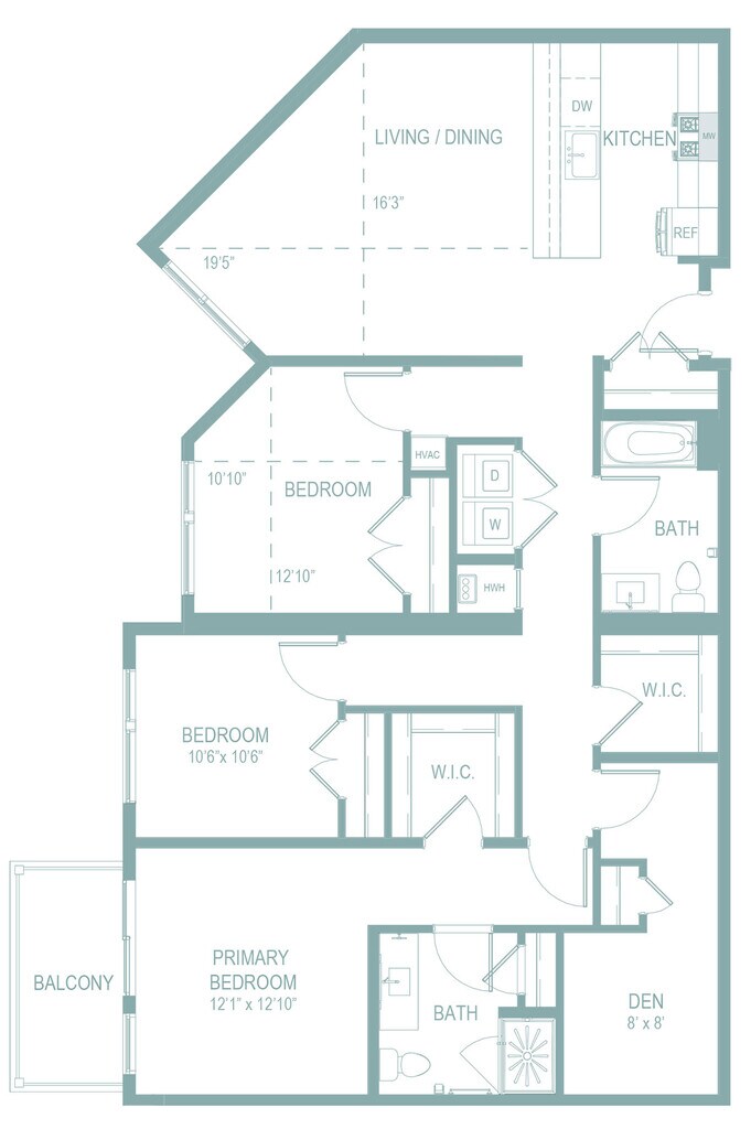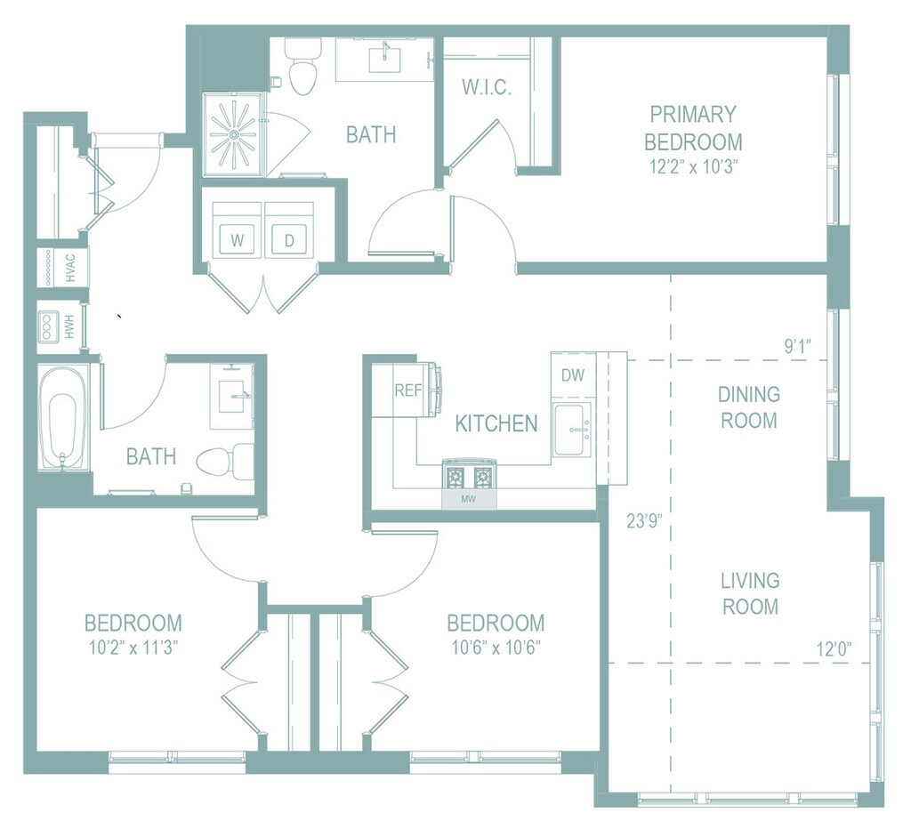 Modelo de apartamento: A3.1$3,1701 Dormitorio, 1 Baño, 855 sq ftDisponible Ahora![]()