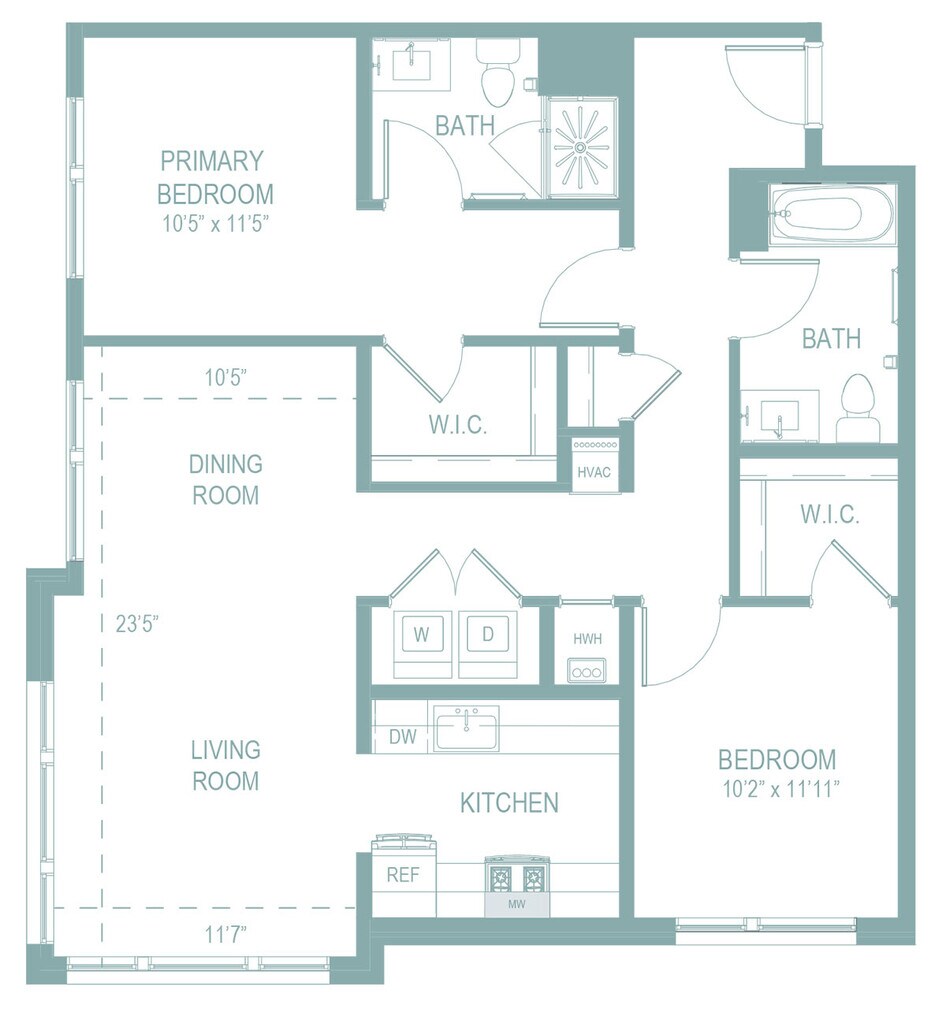 Modelo de apartamento: A5$2,5451 Dormitorio, 1 Baño, 645 sq ftDisponible Ahora![]()