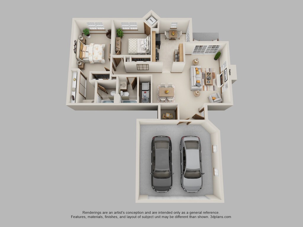 2 Dormitorios, 2 Baños, 1280 pies²Disponible AhoraGalería del Modelo