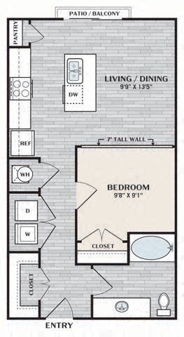 Modelo de apartamento: One-Bedroom (A1)Desde $1,3491 Dormitorio, 1 Baño, 712 sq ftDisponible Ahora![]()