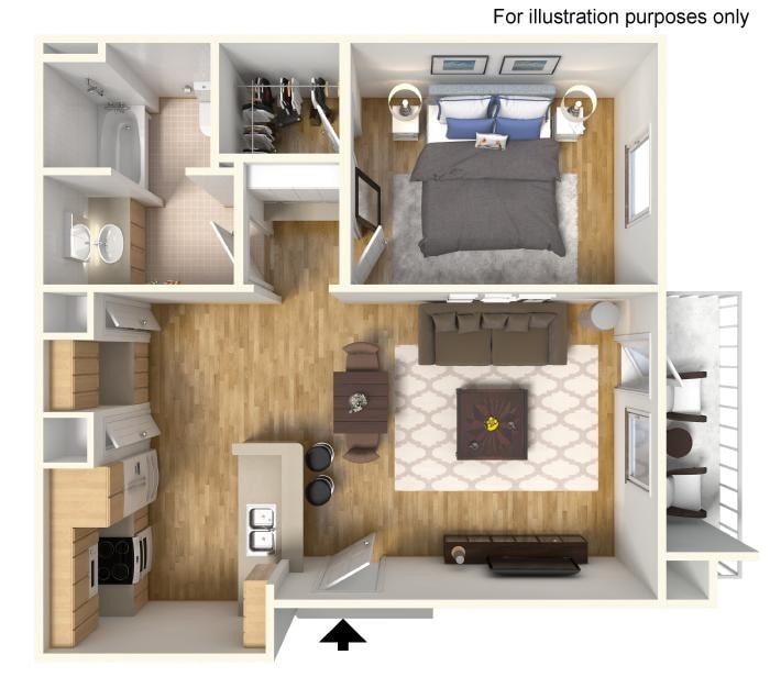 1 Dormitorio, 1 Baño, 754 pies²Disponible AhoraGalería del Modelo