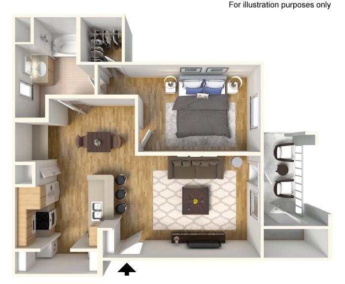 Modelo de apartamento: A1Desde $8421 Dormitorio, 1 Baño, 754 sq ftDisponible Ahora![]()