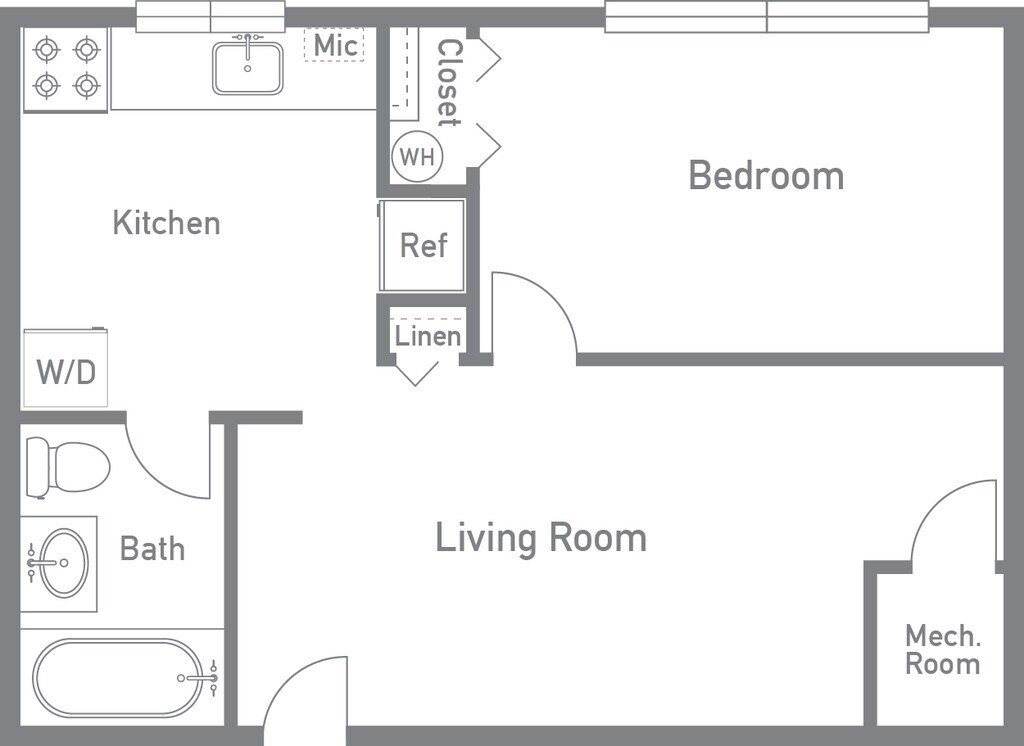 1 Dormitorio, 1 Baño, 630 pies²El más grandeEsta opción tiene las unidades más grandes para este modeloGalería del Modelo