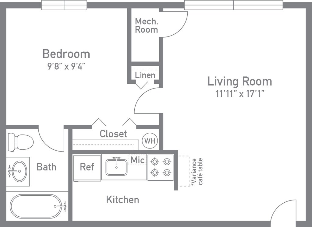 Estudio, 1 Baño, 323 pies²Disponible AhoraGalería del Modelo
