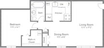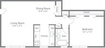 Modelo de apartamento: The WillowLlame para Precios1 Dormitorio, 1 Baño, 629 sq ftNo Disponible![]()