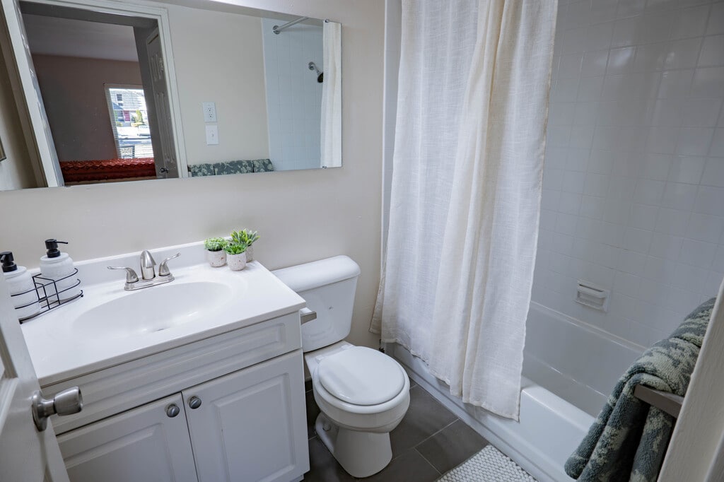 - Baños renovados con pisos de cerámica y espejos de tocador de gran tamaño