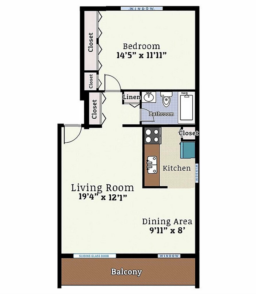 Estudio, 1 Baño, 600 pies²Disponible AhoraGalería del Modelo