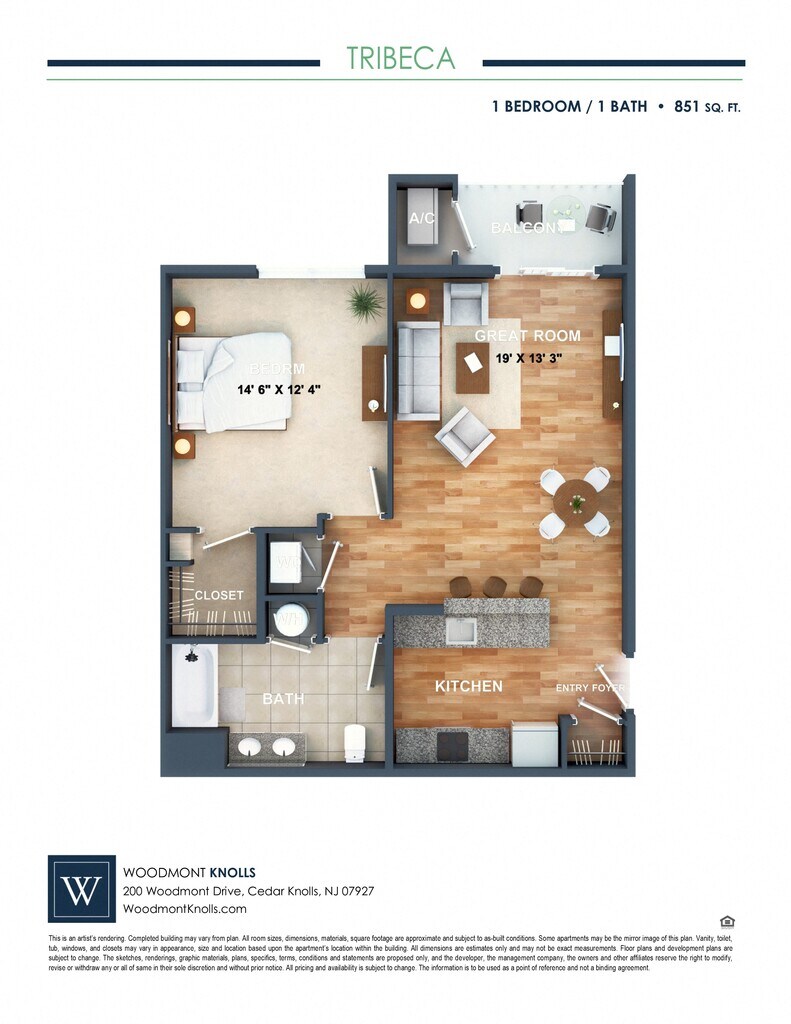 Modelo de apartamento: Tribeca1 Dormitorio, 1 Baño, 851 sq ftDisponible December 9, 2025![]()